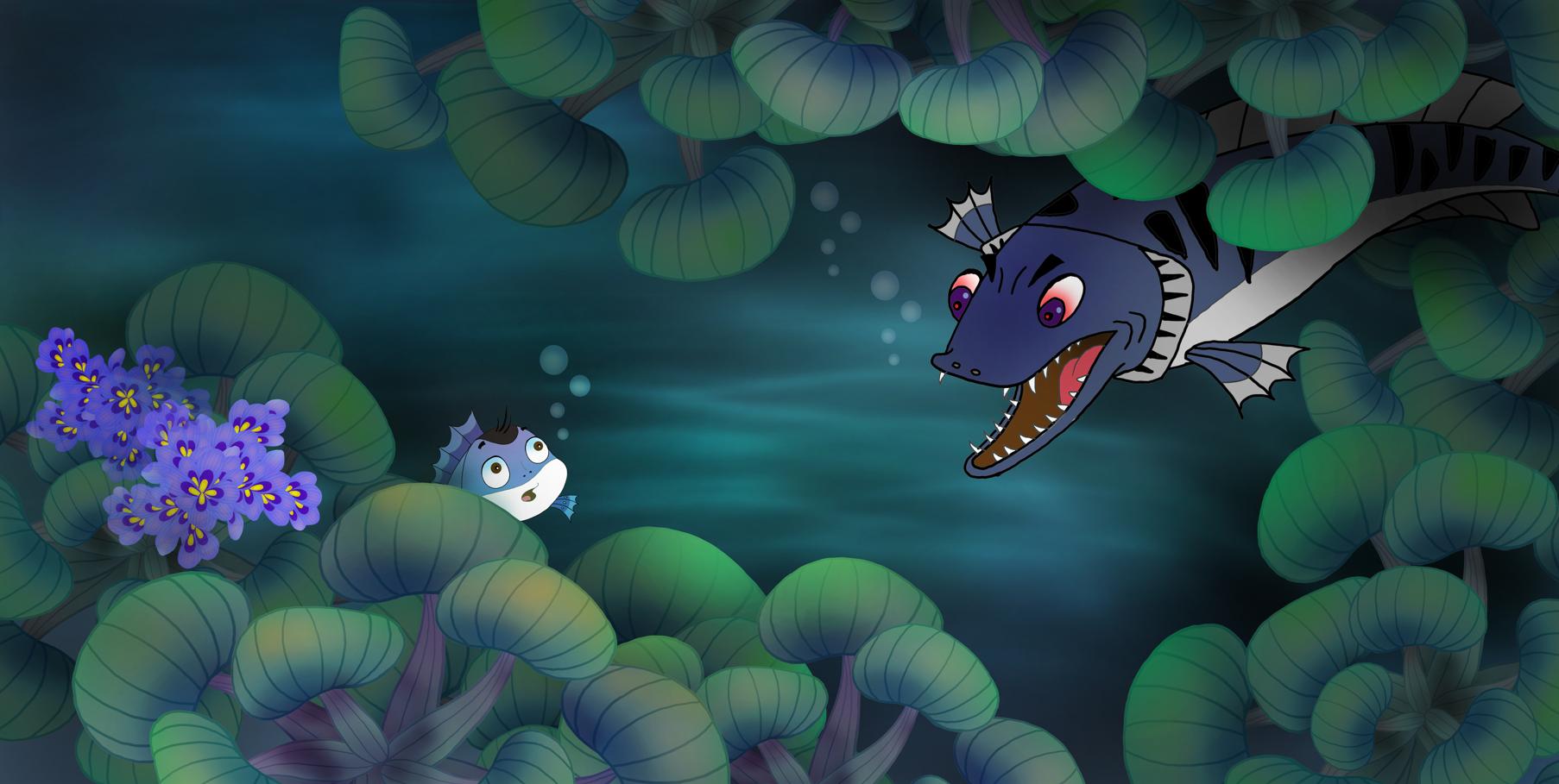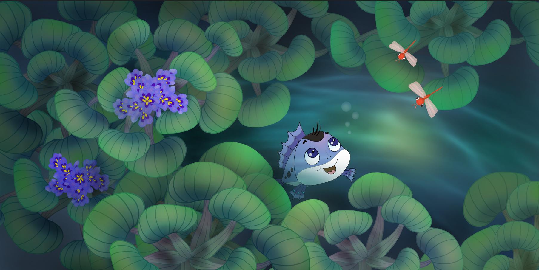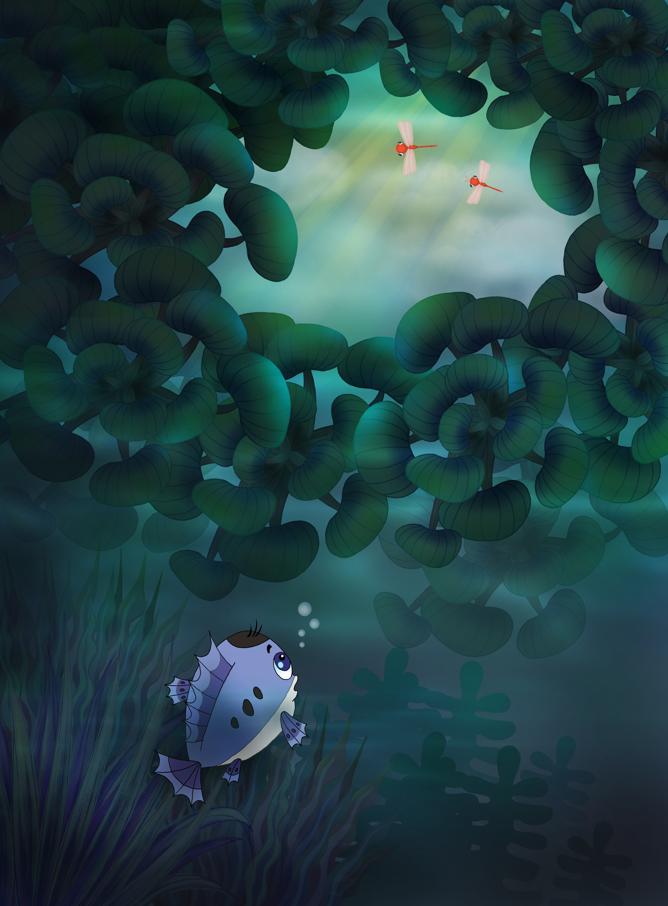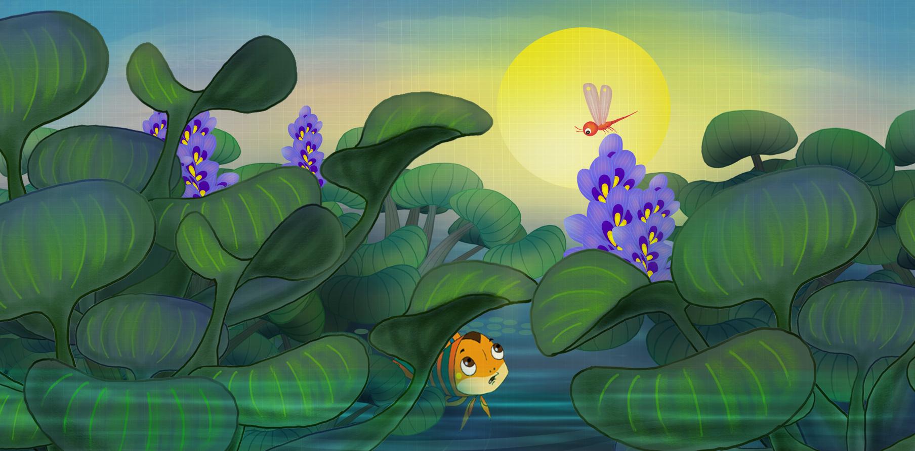 Ron the Perch always dream of swimming up to the open space in the middle of the pond to see the sky, but he could never make it because the way there was full of dangers and obstacles. In the end, thanks to his persistent practice and his father’s guidance, Ron’s dream finally came true. Even more, he gains the confidence to help his friend, Flag Tail, overcome fear and swim up with him to enjoy the long-dreamed-of patch of sky.