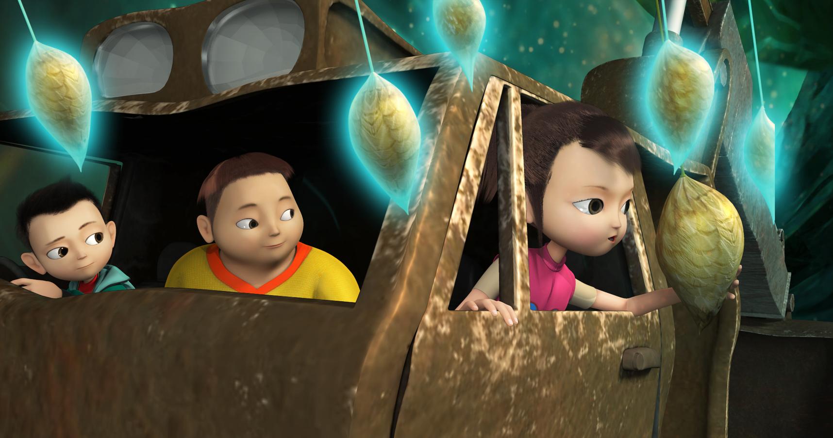 A Cry for Help from the Future: A group of young friends receives a distress call from the future. With the help of the Blue Star spaceship, they travel to a planet destroyed by pollution and natural disasters. There, the Blue Star’s power is disabled and buried beneath streams of lava. Using their unique abilities, the friends manage to find water, lower the planet’s temperature, and bring the dead world back to life – restoring hope to the tiny, winged inhabitants who live there.